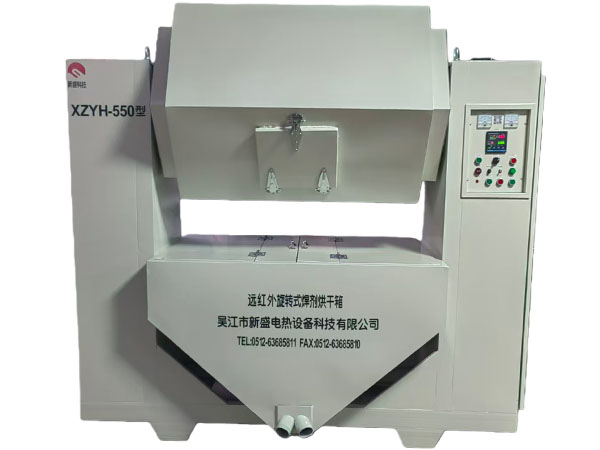 XZYH 型旋转式焊剂烘干机是埋弧自动焊剂专用设备,配有旋转装置,可将加热焊剂料筒360℃顺时针及逆时针翻转,焊剂在低速不断滚动状态下受热,均匀烘干,滚筒上开有排气孔,使蒸发气体迅速逸出,从而达到一般烘干炉难以达到的烘干效果。本机采用远红外辐射加热,自动恒温,定时恒温等功能,具有热损失小、效率高、操作方便等优点。经烘干的焊剂含水量低于0.1%,工作温度可达500℃。该产品填补单机大容量烘干焊剂国内空白,得到了石油部五大钢管厂的青眯和赞誉。